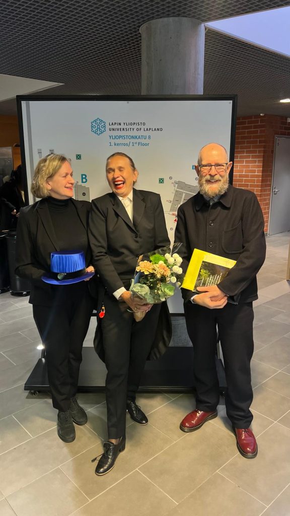 Katja’s excellent thesis contextualised her symposium series ISEAS that she has led since 2017, supported by a series of published articles, and a solid discussion of the ethics and theories of socially engaged arts practice. We were hosted very well by the University of Lapland in Rovanienmi, and the public defence was well received by the audience and the institution. It was also very exciting to be in a snowy winter landscape in January!